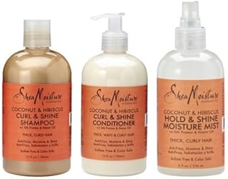 Shea Moisture Cleanse, Condition & Style Pack - Coconut & Hibiscus Curl and Shine Shampoo & Conditioner 384ml bottles & Hold and Shine Moisture Mist 236ml by Shea Moisture