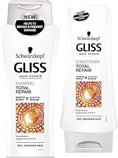 Schwarzkopf Gliss Total Repair Shampoo for Dry, Damaged Hair 250ml and Total Repair Conditioner for Dry, Damaged Hair 200ml Duo Set - with Liquid Keratin by Total Glis