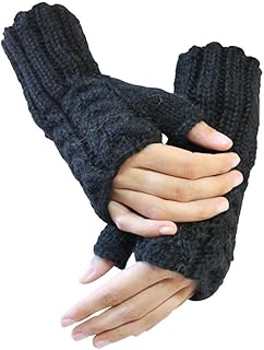 Alpaka Handschuhe fingerlos aus Alpaka Wolle für Damen mit Zopfmuster Einheitsgrößen One Size