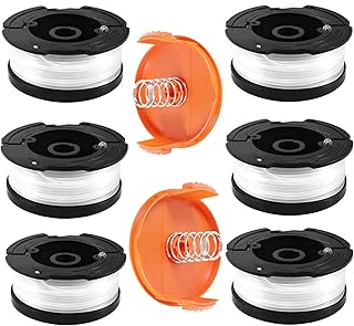 6 Stück Rasentrimmer Faden A6481 A6485 Fadenspule für Black Decker Rasentrimmer, Ersatzfadenspulen Ersatzspule Rasentrimmer mit 2 Kappe 2 Feder für Black Decker ST5530 STC1820CM STC1820PC STC1820EPC