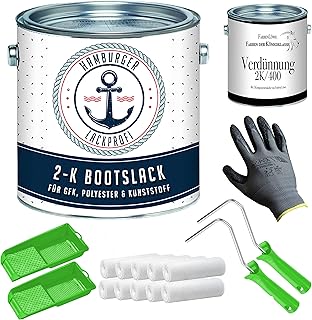 2K Bootslack GLÄNZEND für Holz und Metall Mausgrau RAL 7005 Grau Für GFK/Kunststoff/Polyester Yachtlack Bootsfarbe mit Lackier-SET (X300) und Verdünnung (1 L) // Hamburger Lack-Profi (10 L)