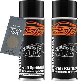 TRISTARcolor Autolack Spraydosen Set für VW/Volkswagen LD7S Slate Grey Metallic/Alpine Grey Metallic Basislack Klarlack Sprühdose 400ml