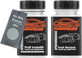 TRISTARcolor Autolack Lackstift Set für Alfa Romeo 694 Grigio Sterling Metallic/Grigio Gonzaga Metallic Basislack Klarlack je 50ml