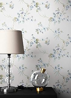 NEWROOM Blumentapete Tapete creme Blumen Blätter Landhaus Vliestapete blau Vlies moderne Design Optik Klassik inkl. Tapezier Ratgeber