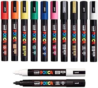Uni Posca PC-5M Paint Pen Art Marker-Stift, professionelles Set mit 12 Stiften, extra schwarz und weiß