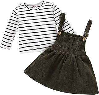 Rock Sets für Kleinkind Baby Mädchen Gestreifte Langarm Bluse Top + Hosenträger Rock Herbst Winter Mädchen Kleid Outfits 2-teilige Set