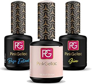 PINK GELLAC Shellac Gel Nagellack 3 x 15 ml für UV LED Lampe | 105 Blush Orange Rosa Rose 15 ml + Base Coat Extend 15 ml + Top Coat Shine 15 ml | Gel Nail Polish Lack Gellack Nagelgel