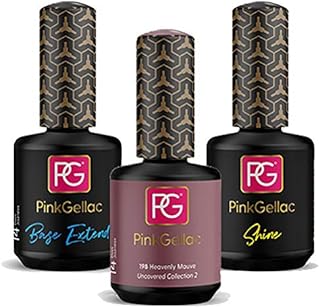 Pink Gellac Shellac Gel Nagellack 3er Set UV LED Lampe | 198 Heavenly Mauve Lila Violett 15 ml + Base Coat Extend 15 ml + Top Coat Shine 15 ml | Nagel Lack Gellack Nagelgel 45 ml