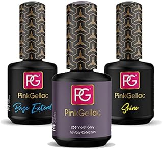 PINK GELLAC Shellac Gel Nagellack 3 x 15 ml für UV LED Lampe | 258 Violet Grey Lila Grau 15 ml + Base Coat Extend 15 ml + Top Coat Shine 15 ml | Gel Nail Polish Lack Gellack Nagelgel