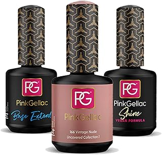 Pink Gellac Shellac Gel Nagellack 3er Set UV LED Lampe | 166 Vintage Nude Rosa Rose 15 ml + Base Coat Extend 15 ml + Top Coat Shine 15 ml | Nagel Lack Gellack Nagelgel 45 ml