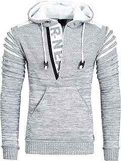 Kapuzen-Pullover Herren Pullover Strick mit Kapuze Pulli Hoodie Zipper mit Front Brand Logo im Future Design 343