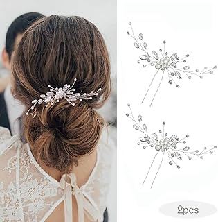 Vakkery Perlen Hochzeit Haarnadeln Silber Kristall Braut Haarschmuck Kopfschmuck Strass Braut Haarschmuck für Frauen und Mädchen (2 Stück)