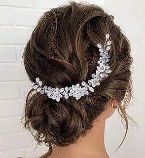 Unicra Brautschmuck Hochzeit Haarschmuck Weinrebe Silber Blume Stirnband Kristall Braut Haarschmuck Perle Kopfschmuck für Frauen und Mädchen