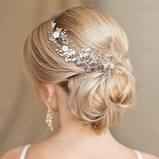 Zoestar Blumen-Braut-Haarschmuck mit silbernen Perlen, Kristall-Kopfschmuck, Brautschmuck, Perlen-Haarschmuck für Frauen und Mädchen