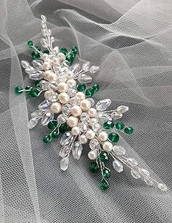 Beryuan Damen-Haarschmuck, Smaragdgrün, Kristall, Weinrebe, champagnerfarbene Perlen, Kopfschmuck, Hochzeit, Strass, Haarschmuck, Geschenk für Ihre Party, Kopfschmuck für Braut, Brautjungfer