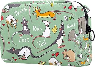 Reise-Make-up-Tasche Große Kosmetiktasche,Ausgefallene Ratte Animal Green ,Make-up-Tasche Organizer für Frauen und Mädchen