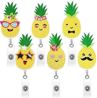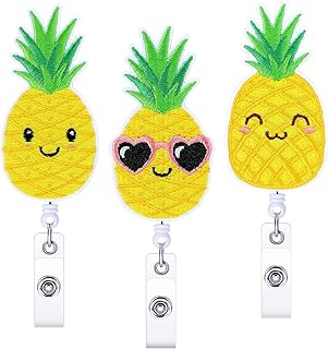 3 Stück Ananas-Abzeichenhalter, Sommer-Filz, bestickt, einziehbar, mit Krokodil-Drehclip, niedlicher Namenskartenhalter für Krankenschwester, Freiwillige, Studenten, Büroangestellte