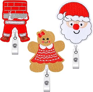 3 Stück Weihnachts-Filz-Abzeichenrolle einziehbarer Ausweishalter niedlicher Ausweishalter mit Krokodilklemme für Arzt, Lehrer, Planer, Clip, Strumpffüller Ornament (niedlicher Stil)