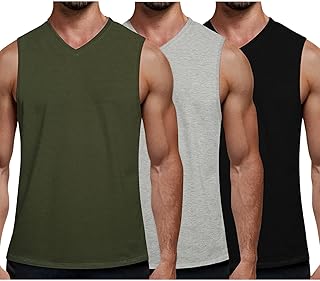 Herren 3er Pack Workout Tank Top V-Ausschnitt Muskelhemd Fitnessstudio Bodybuilding Ärmellose T-Shirts
